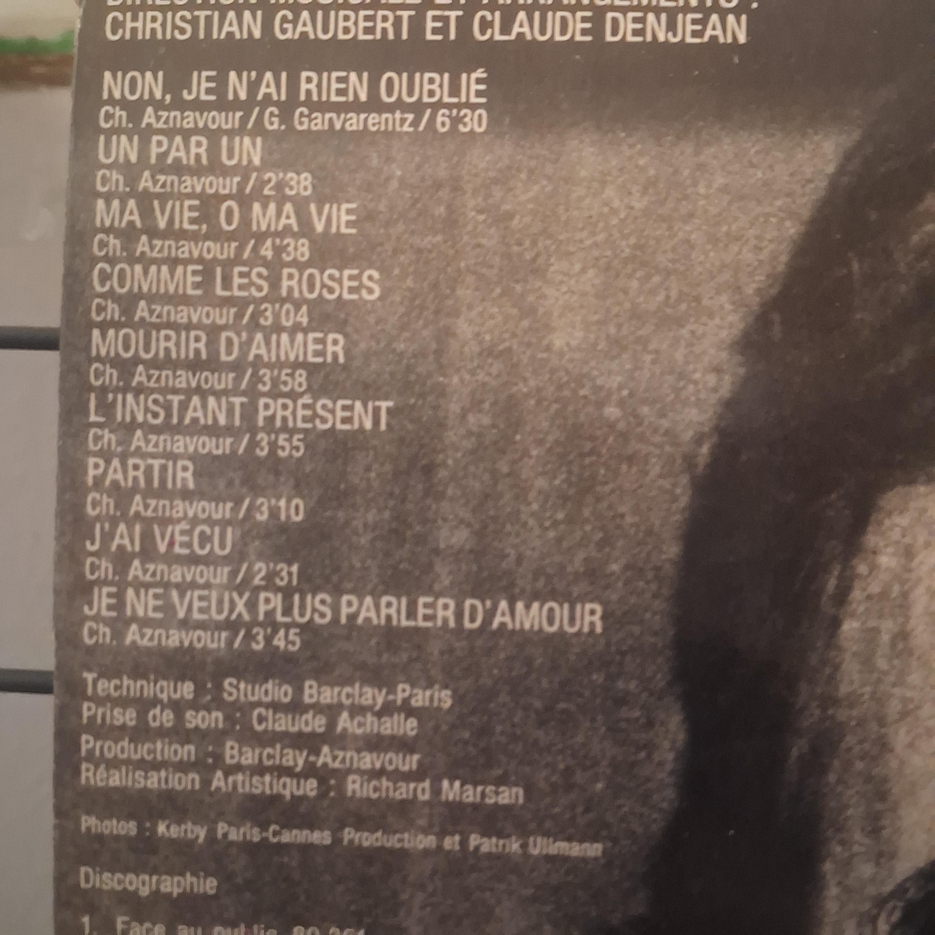 CHARLES AZNAVOUR * NON JE NAI RIEN OUBLIE