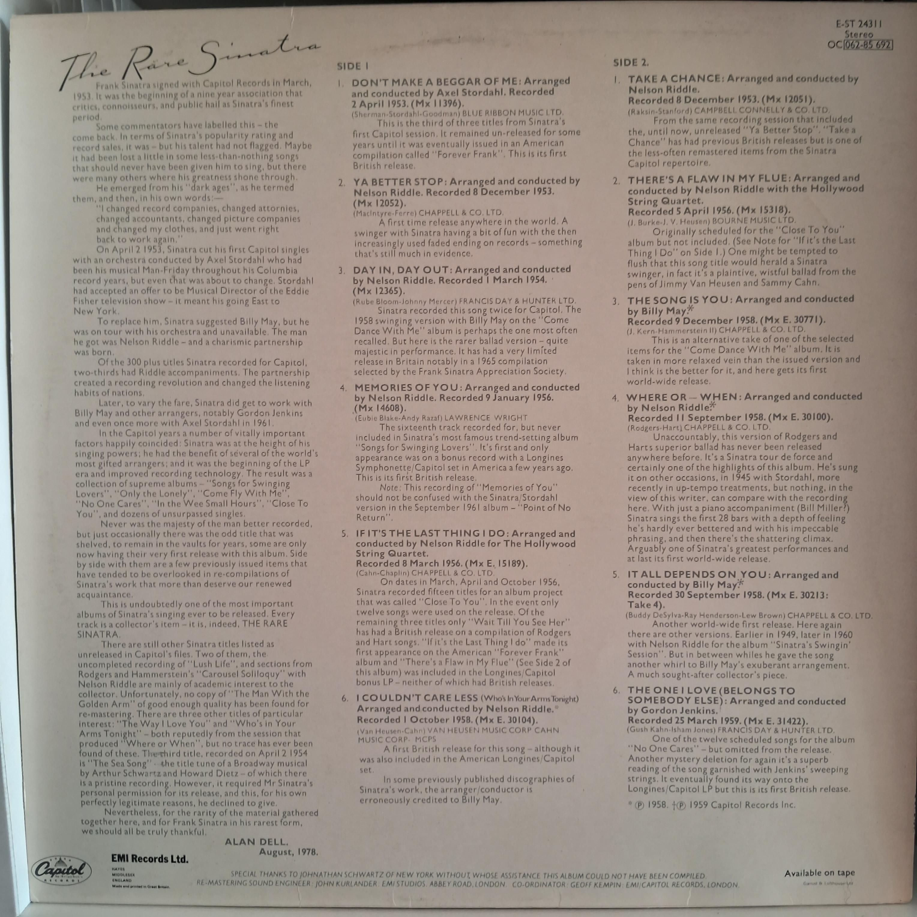 FRANK SINATRA * THE RARE SINATRA