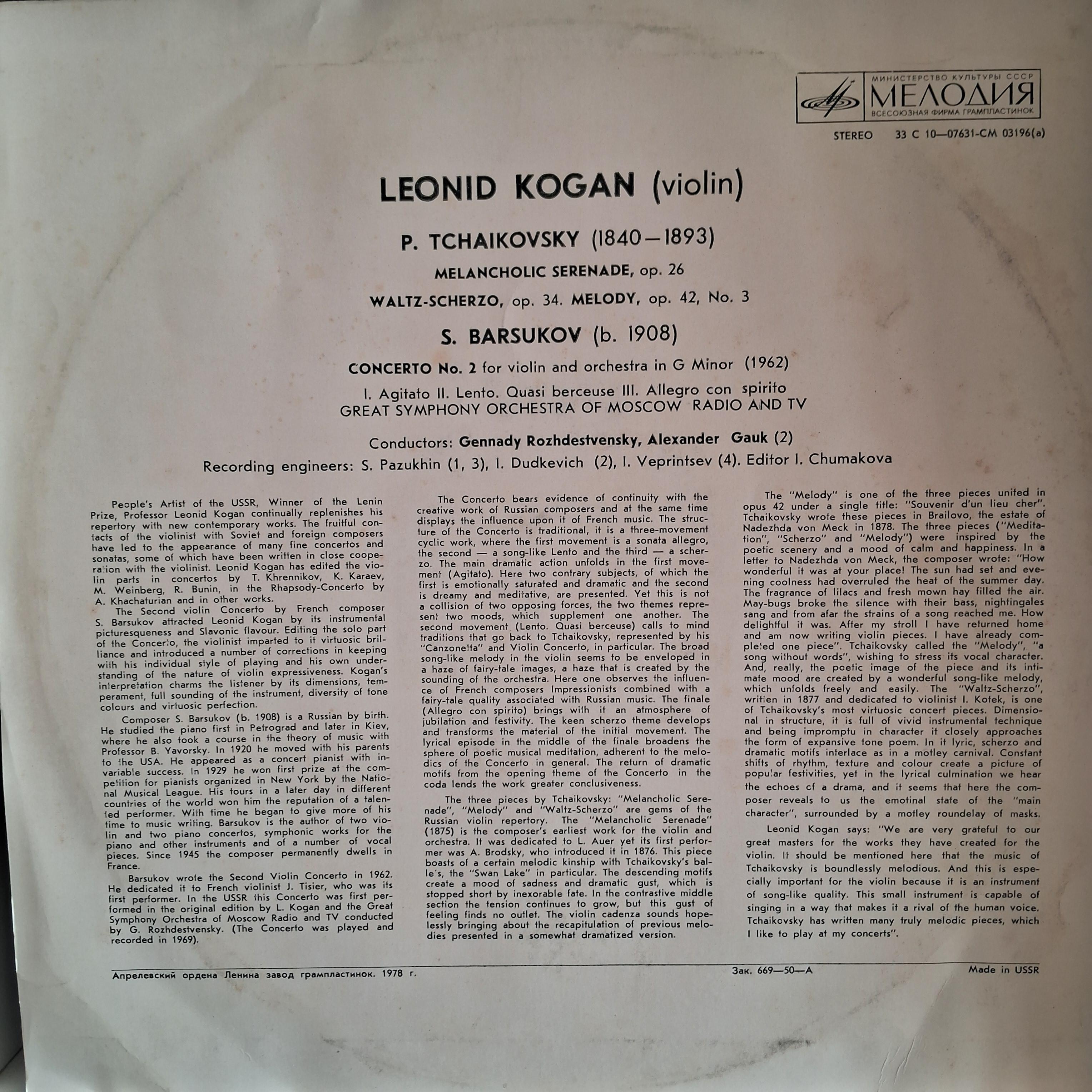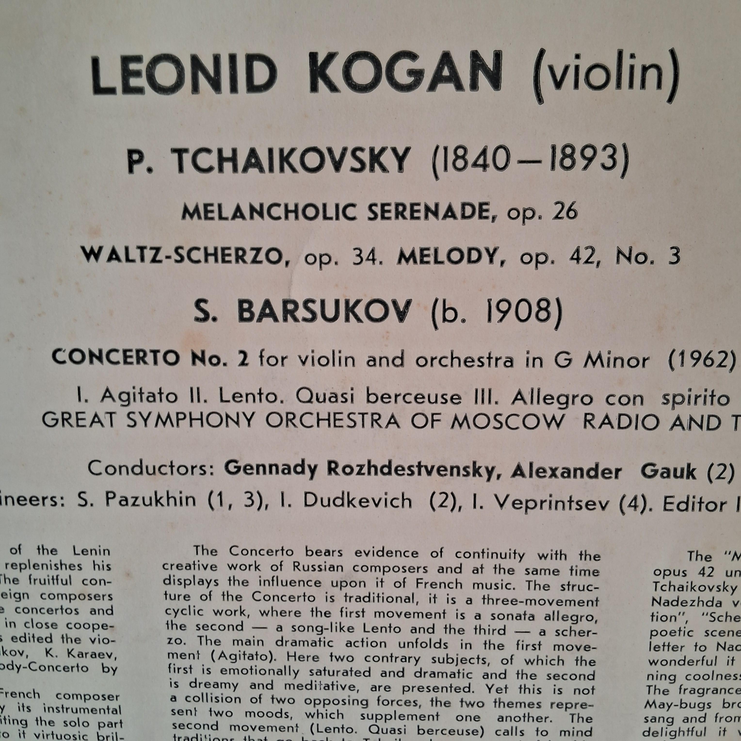 LEONID KOGAN * TCHAIKOVSKY, BARSUKOV